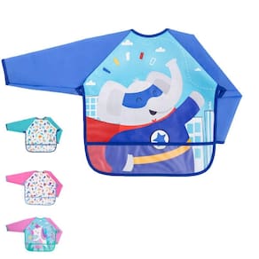 Avental babador com manga longa alimentação bebes impermeavel pega migalhas cor: superhero o avental/babador com mangas da buba possui tecido impermeavel e bolso pega migalhas, ideal para evitar que o pequeno suje a roupinha. O fecho se ajusta facilmente ao pescoco do bebe. Composição: babador: 100% acetato de vinil de polietileno peva , mangas: 85% poliester, 15% algodao. Impermeável fecho em ajuste pode ser utilizado como babador idade recomendada: +3 meses com bolso pega migalhas livre bpa medidas: 39x75 axl cm