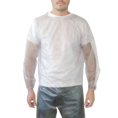 Avental Barbeiro Vinil 0,15 mm Maicol CA 45219 Proteção e praticidade em corte e higienização O avental barbeiro em vinil laminado de 0,15 mm foi desenvolvido para oferecer barreira impermeável contra respingos de líquidos e produtos químicos em baixas concentrações, mantendo conforto e mobilidade durante o uso prolongado. Conta com mangas longas, elástico nos punhos, fechamento por botões de pressão nos ombros e tiras soldadas na cintura com fivela de engate rápido.