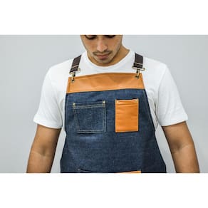 Avental para uso de diversas profissões ou profissionais. Material top de linha, produto de qualidade garantida pela fabrica. Aventais modernos e confortáveis, quem compra recomenda, qualidade acima da média. Material extremamente resistente, com alças de cintas reguláveis. Torna o atendimento mais rápido e prático, podendo se ter foco no que interessa que é um bom atendimento e é claro o lucro. Acabamento fino com ilhós, mosquetões e rebites em ouro velho de alta qualidade. Avental feito em jeans, confortável, material resistente, com acabamentos e soluções que o tornam mais fácil e pratico seu dia-a-dia. Alças com regulagem, ajuste de altura, deslizantes que se adequam a qualquer biotipo, seja ele baixo, algo magro ou forte. Características: Tamanho único, ajustável para pessoas altas, pequenas, fortes e magras. Tipo: Cozinha, Churrasqueiro, Barmen, Confeitaria, Barbeiro, etc. se aplica as muitas profissionais Material: Jeans com aplicações de couro. Largura Cm: 0,57 Comprimento Cm: 0,88 Podem ter pequenas variaçãoes de cor tanto no jeans quanto no couro. Produção totalmente artesanal com material sintético de alta qualidade, de qualidade D'KING.