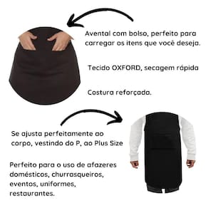 Fácil de lavar e secar, e tem um bolso frontal para guardar os seus utensílios. Ele também tem uma alça ajustável na cintura, que garantem um ajuste confortável.