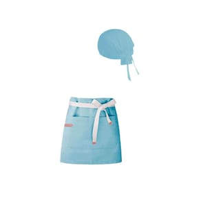 Avental de Cintura Azul e Bandana Algodao Cozinha Bar Vegano