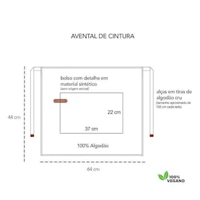 Avental de cintura em algodao. Ajustavel na cintura, atraves das tiras para amarrar e bolso frontal. Ideal para chef de cozinha, barista, jardinagem, pintura e outros. Este avental é pratico, basico, veste bem e facil de lavar. O avental profissional da Casacha atende bem aos clientes mais exigentes priorizando conforto, qualidade e estilo. O material sintetico não é proveniente de origem animal.