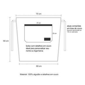 Material: 100% Algodao e Couro