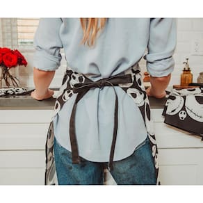 - Todo mundo grita de entrega: o avental de cozinha apresenta o rosto familiar da celebridade local de Halloween Town. Use a estampa completa das muitas expressões de Jack Skellington enquanto serve uma sopa de verme de verme.