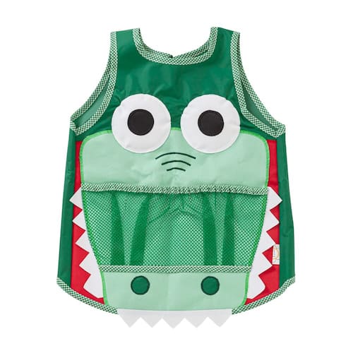 Fazer arte agora vai ficar muito mais divertido com este avental de jacaré. Alegria para a criançada e sossego para as mamães e papais. Tem um bolso frontal para os materiais ficarem organizados e bem à mão na hora de pintar.
