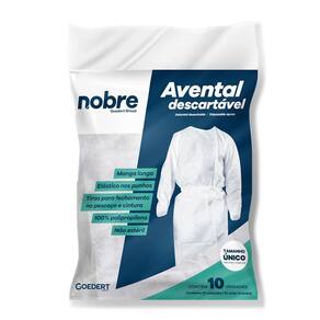 Avental descartável manga longa 25g - tnt - 10 unidades - nobre avental não estéril em tecido não tecido tnt , descartável para procedimentos cirúrgicos, com acabamento nos punhos em latéx, abertua traseira e fechamento em tiras para amarrar atrás do pescoço e na cintura, gola cirúrgica. Utilizada em hospitais, laboratórios de manipulação, consultórios dentários e médicos, indústrias químicas, farmatêuticas e alimentícias. O avental pode ser utilizado tanto para proteger o usuário, quanto o produto manuseado. É higiênico e evita contágio e transmissão de doenças infecciosas. Hipoalergênico, não estéril, atóxico, não inflamável, descartável. Tamahho único. Cor branca. Tnt 25gr pacote com 10 unidades