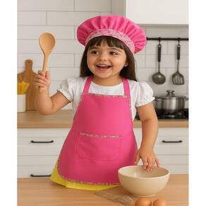 Avental Infantil Escolar confeccionado em tecido Oxford de alta qualidade, resistente, leve e fácil de lavar, ideal para o uso diário em atividades escolares, oficinas de arte, culinária e recreação. Com 46cm de altura, oferece proteção e conforto para a criança, permitindo liberdade de movimentos. Possui bolso frontal prático, perfeito para guardar pequenos objetos, e fio de amarração na parte de trás, garantindo melhor ajuste ao corpo. O avental acompanha uma touca combinando, trazendo mais charme ao conjunto e ajudando a manter o cabelo preso e protegido durante as atividades. Uma opção completa para manter as crianças organizadas, seguras e estilosas em sala de aula ou em casa.