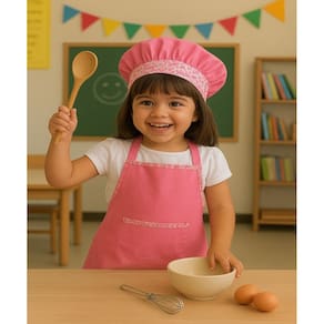 Avental Infantil Escolar confeccionado em tecido Oxford de alta qualidade, resistente, leve e fácil de lavar, ideal para o uso diário em atividades escolares, oficinas de arte, culinária e recreação. Com 46cm de altura, oferece proteção e conforto para a criança, permitindo liberdade de movimentos. Possui bolso frontal prático, perfeito para guardar pequenos objetos, e fio de amarração na parte de trás, garantindo melhor ajuste ao corpo. O avental acompanha uma touca combinando, trazendo mais charme ao conjunto e ajudando a manter o cabelo preso e protegido durante as atividades. Uma opção completa para manter as crianças organizadas, seguras e estilosas em sala de aula ou em casa.