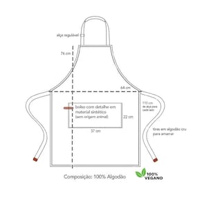 Contem: 2 Aventais Unissex Tamanho: 76 x 64 cm Material: 100% Algodao CASACHA especializada em aventais e jogos americanos profissionais Marca: CASACHA