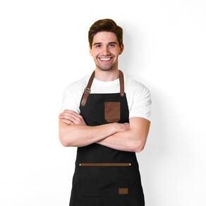 Avental corpo inteiro em tecido e detalhes em couro. O avental profissional da Casa Cha possui alça regulavel no pescoço, ajuste na cintura atraves do vies em couro para amarrar e bolsos frontais. Ideal para jardinagem, barbearia, chef de cozinha, barista, cafeteria e outros. Este avental atende bem aos clientes mais exigentes priorizando conforto, qualidade e estilo. Os detalhes em couro sao perfeitos para gravar seu nome ou logomarca. A personalizacao dos aventais deve ser feito por empresa terceirizada, enviamos conforme foto e descricao.