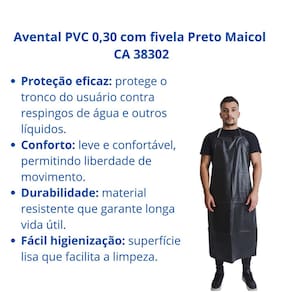 Adquira já seu Avental PVC 0,30 com Fivela Preto Maicol CA 38302 e garanta proteção, durabilidade e conforto em suas atividades!