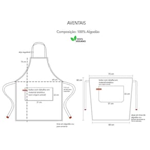 Contem: 1 Avental de Cintura Tamanho: 70 x 60 cm 1 Avental Corpo Inteiro Tamanho: 76 x 64 cm Material: 100% Algodao Marca: CASACHA