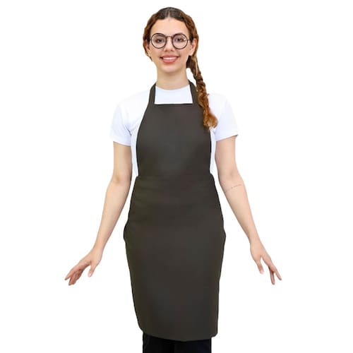 O Avental Vestido com Peito Largo, Avental Caqui, também chamado de Avental saia largo é confeccionado em Oxford, 100% Poliéster.