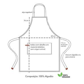 Contem: 1 Avental de Cintura Tamanho: 64 x 44 cm 1 Avental Corpo Inteiro Tamanho: 76 x 64 cm Material: 100% Algodao Marca: CASACHA