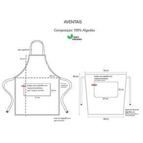 Contem: 1 Avental de Cintura Tamanho: 70 x 60 cm 1 Avental Corpo Inteiro Tamanho: 76 x 64 cm Material: 100% Algodao Marca: CASACHA