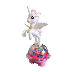 Música Alegre: O unicórnio toca músicas alegres que vão encantar e animar as crianças. A música cria um ambiente divertido e envolvente para brincar.