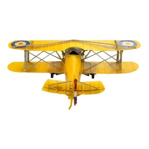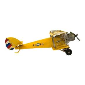 Enfeite decorativo em forma de um avião amarelo de hélice com 10 x 29 x 28 cm de dimensão, detalhes e cores muito realista. Material: metal; Atenção: este produto tem apenas função decorativa, não é um brinquedo e nem um avião de verdade!