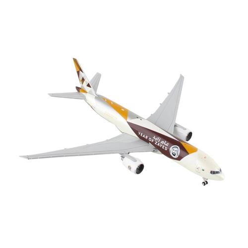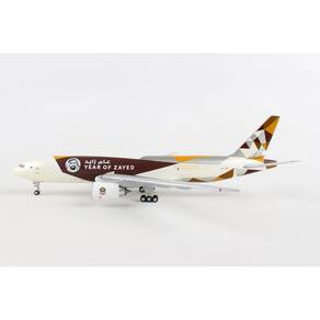 Aeronave comercial GeminiJets Boeing 777F Etihad Cargo - Ano de Zayed White com gráficos, modelo de avião moldado sob pressão 1/400