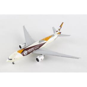 - Novo modelo de avião fundido sob pressão em escala 1/400 da aeronave comercial Boeing 777F “Etihad Cargo - Year of Zayed” branca com gráficos, modelo fundido sob pressão da GeminiJets. Exterior detalhado. Detalhes em escala real.