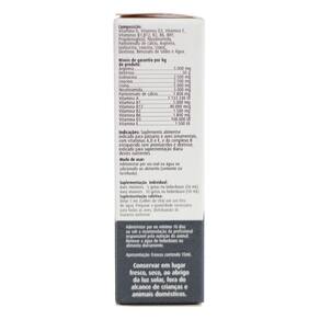 Suplemento alimentar indicado para pássaros e aves ornamentais, com vitaminas A, D e E, e do complexo B enriquecido com aminoácidos, dextrose e ferro, indicado para suplementação diária destes nutrientes.