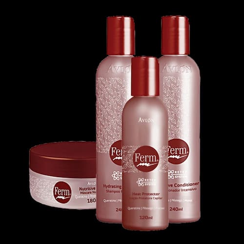 • Ferm Nutritive Mask 180g: Desenvolvida especialmente para o tratamento intensivo de cabelos alisados. Hidrata e nutre por meio da ação de óleos de Monoi e Coco e da Manteiga de Karité. Impede a perda da umidade, desembaraça e disciplina os fios.