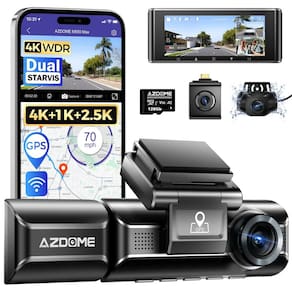 A câmera de painel AZDOME M550 Max para carros inclui um cartão de 128GB.