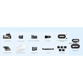 Itens inclusos: 1 Câmera frontal 4K 1 Câmera interna full HD 1 Câmera Traseira full HD 1 Cabo de alimentação (liga no acendedor do veículo) 1 Kit 24h Liga Direto na bateria 1 Cartão de memória de 64gb 1 Suporte para fixação da câmera traseira 1 Adesivo para fixação da câmera frontal 1 Manual de instrução. Ean: 6973888261532
