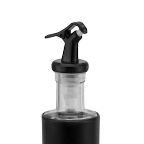 - 01 Azeiteiro e Vinagreiro Preto com Dosador em Vidro e Inox 300ml.