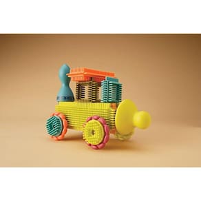 Eles podem parecer um pouco diferentes, mas esses são os verdadeiros Bristle Blocks que você conhece e ama. No estilo B., os Bristle Block Stackadoos foram melhorados com cores vibrantes e modernas. Peças grossas e macias são fáceis de conectar e se sentem bem em pequenas mãos. Construa todos os tipos de criaturas únicas, edifícios e muito mais, colando blocos de vários tamanhos e formas juntos. Eles são o primeiro conjunto perfeito de Bristle Blocks ou podem ser combinados com outras coleções para entreter seu filho pequeno por horas a fio. 68 peças, um livreto cheio de ideias de construção e um frasco de armazenamento com alça estão incluídos para minimizar a desordem. A partir dos 2 anos de idade.