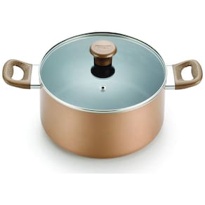 Construção de alumínio durável para desempenho duradouro O indicador de calor exclusivo Thermo Spot mostra claramente quando a panela está pré aquecida corretamente O interior antiaderente ProGlide superior resiste aos rigores da cozinha diária Alças elegantes, ergonomicamente projetadas e combinadas com cores para segurança, conforto e beleza Base de calor uniforme para resultados de cozimento confiáveis Máquina de lavar louça segura. Tampas de vidro ventiladas para fácil monitoramento durante o cozimento