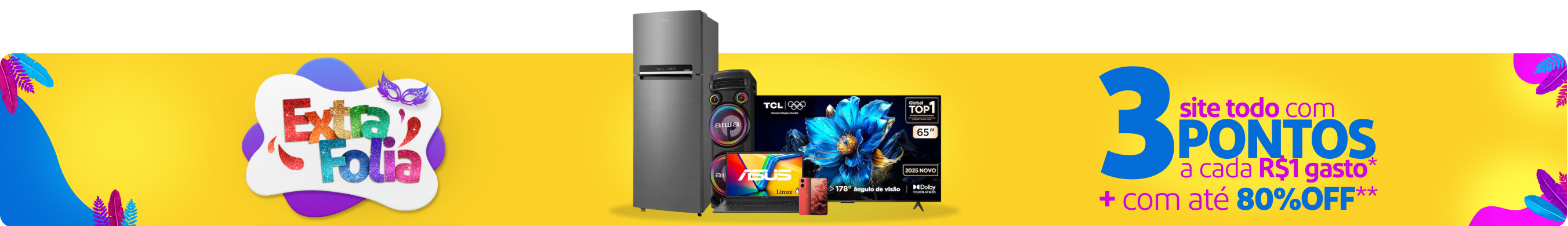Produtos que não são vendidos e nem entregues pelo Extra.com.br somente poderão acumular pontos mediante Campanhas lançadas pelo Extra.com.br, válidas por tempo determinado, conforme regras e mecânicas definidas na oferta/campanha Em uma compra, o Participante somente pode acumular Pontos/Milhas pela modalidade de Acúmulo Padrão ou pela modalidade de Acúmulo Especial, a depender das regras definidas na oferta, não sendo possível acumular Pontos nas duas modalidades.