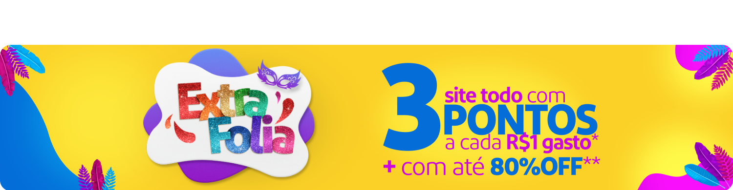 Os Pontos/Milhas adquiridas nas compras pelo Hotsite serão creditados na conta do Participante em até 15 dias corridos após a entrega do produto. O Extra.com.br e a Livelo não se responsabilizam pela informação incorreta, pelo Participante, do número de CPF.