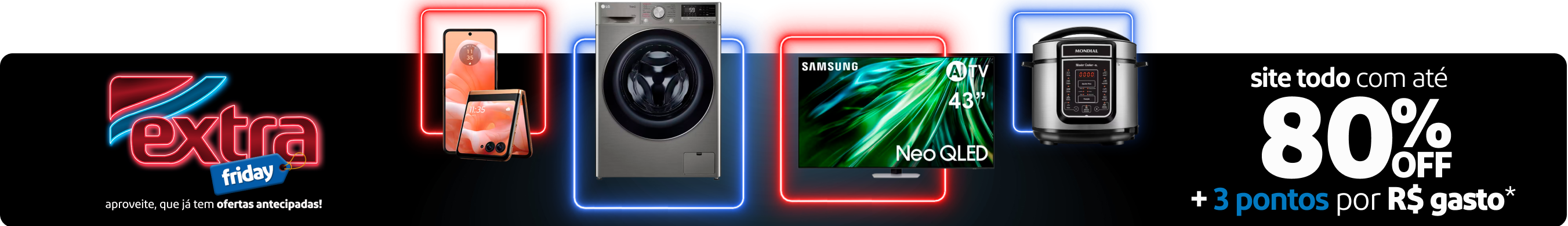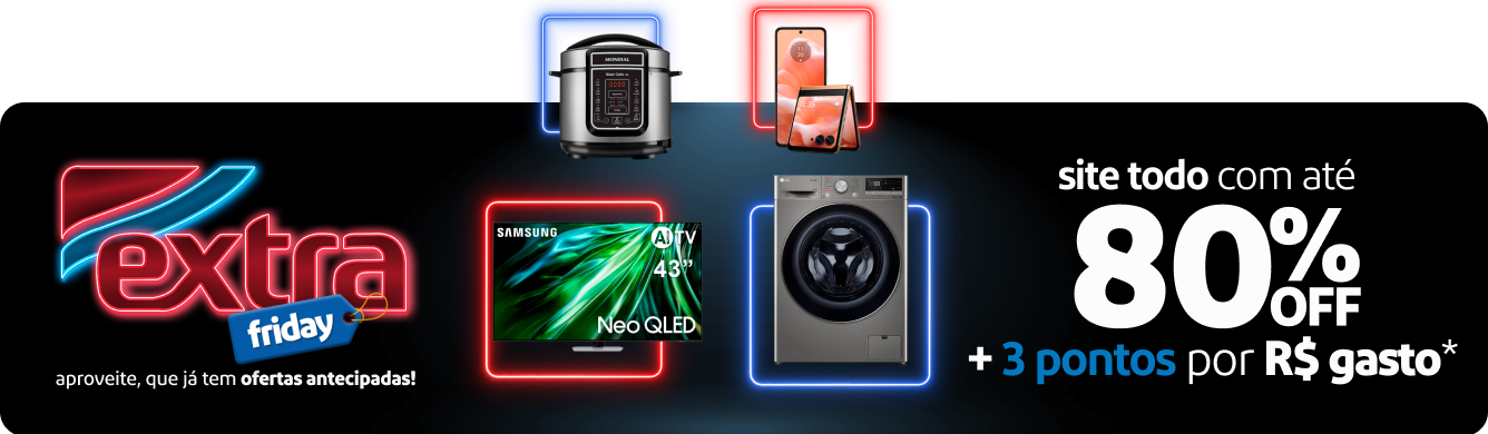 Produtos que não são vendidos e nem entregues pelo Extra.com.br somente poderão acumular pontos mediante Campanhas lançadas pelo Extra.com.br, válidas por tempo determinado, conforme regras e mecânicas definidas na oferta/campanha Em uma compra, o Participante somente pode acumular Pontos/Milhas pela modalidade de Acúmulo Padrão ou pela modalidade de Acúmulo Especial, a depender das regras definidas na oferta, não sendo possível acumular Pontos nas duas modalidades.