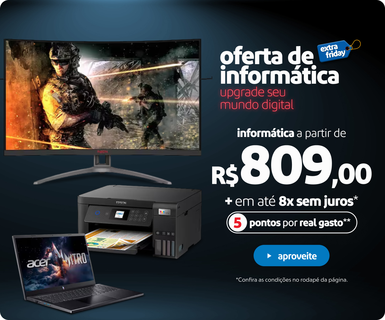Os Pontos/Milhas adquiridas nas compras pelo Hotsite serão creditados na conta do Participante em até 15 dias corridos após a entrega do produto. O Extra.com.br e a Livelo não se responsabilizam pela informação incorreta, pelo Participante, do número de CPF.