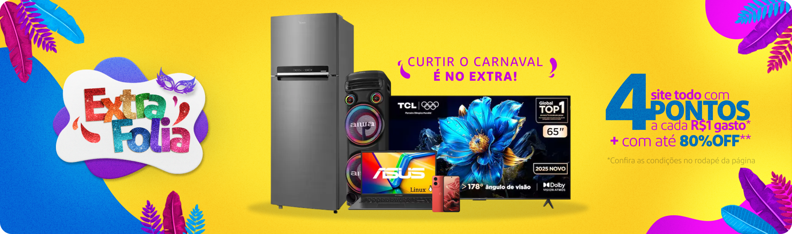 As vendas realizadas pelo Hotsite são de responsabilidade da Via Varejo S/A, inscrita no CNPJ sob o nº 33.041.260/0652-90 (“Extra.com.br).