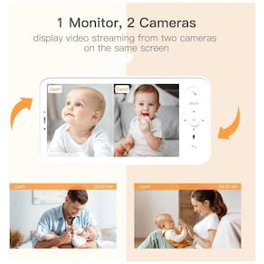 Babá Eletrônica com 2 Câmeras WiFi 2K UHD, Tela 5" HD, Visão Noturna, Detecção de Choro - Monitor Bebê ARENTI SplitScreen