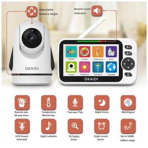 Alto nível de privacidade O monitor de bebê sem Wifi garante sua privacidade. É transmitido via canal avançado de 2,4 GHz com FHSS e tecnologia de criptografia digital. Você é o único que pode ouvir e ver o quarto do seu bebê ou animal de estimação, esteja você cozinhando ou capinando no quintal. Câmera remota com zoom pan tilt e lente extensível Nosso monitor de bebê tem uma tela grande de 5 polegadas, função de zoom 2X e suporta panorâmica remota, inclinação e rotação, para que você possa observar as atividades do seu bebê em detalhes de vários ângulos. Além disso, nossos monitores são expansíveis com até 4 câmeras, permitindo que você monitore várias áreas ou quartos de outras crianças. Vida útil da bateria Monitor de bebê de ampla ampla variedade com câmera e áudio Monitora seu bebê ou animais de estimação durante toda a noite facilmente, alcance até 304 metros junto com a longa duração da bateria até 16 horas com uma única carga, até 30 horas de uso no modo Vox. Você pode se manter conectado com seu bebê, não importa o que esteja fazendo, mesmo cozinhando. Visão noturna do sensor de temperatura O sensor de temperatura embutido na câmera do bebê envia alerta para a unidade dos pais que é hora de ajustar o termostato. Deixa seu bebê mais confortável. O Baby Monitor fica de olho no estado de sono do seu bebê a noite toda. 8 canções de ninar calmantes O monitor de bebê 2 Way Talk vem com canções de ninar calmantes para ajudar a acalmar seu bebê, tornando mais fácil adormecer. O monitor de vídeo do bebê suporta conversa de 2 vias. Seu bebê pode ouvir sua voz onde quer que você esteja em casa. É o melhor presente para novas mães, presente ideal para registro de bebês Marca: Não Informado