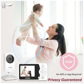 Desfrute de áudio e vídeo cristalinos com este monitor de bebê, que proporciona vídeo em tempo real e áudio claro do seu bebê. Com qualidade de imagem excepcional, você pode ver cada detalhe e ouvir cada som, garantindo que você não perca nenhum momento do seu pequeno. Sem necessidade de WiFi, a conexão é segura e privada, protegendo a privacidade do bebê. O modo ECO inteligente economiza bateria, ativando a tela apenas quando detecta som do bebê. Com visão noturna automática, é fácil de configurar, usar e transportar para qualquer lugar.