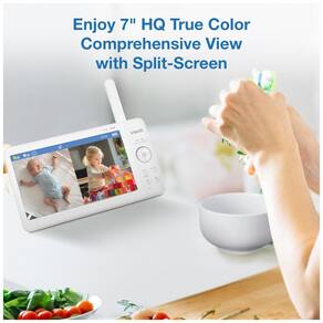 Mantenha seu bebê sempre seguro e sob controle com o Monitor de Bebê de Vídeo Digital Twin 17 cm VTech Advanced HQ Max. Com tela LCD IPS de 17 cm, este monitor oferece ampla visualização, cores precisas e clareza aprimorada. As câmeras possuem capacidade de panorâmica, inclinação e zoom de 4x, com ângulo de visão de 110 graus. Equipado com bateria recarregável de até 12 horas de streaming de vídeo, monitore a temperatura, movimento e som do quarto do bebê para manter um ambiente aconchegante. A visão noturna ativa em condições de pouca luz. Acalme seu bebê com luz noturna multicolorida, sons suaves e canções de ninar, juntamente com conversa bidirecional para acalmá-los quando estão angustiados. Com conexão sem fio segura de 2,4GHz e alcance impressionante de 300 metros, você pode se movimentar livremente pela casa sem interrupção na transmissão de vídeo. Sem necessidade de WiFi, basta ligar e começar a monitorar com facilidade.