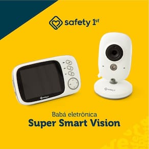 Babá Eletrônica Super Smart Vision – Safety 1st Tela LCD colorida de 3,2” com tecnologia IPS, imagens nítidas, zoom e possibilidade de visualizar até 2 câmeras ao mesmo tempo. Visão noturna, sensor de temperatura, 8 músicas de ninar e função Talk Back para falar com o bebê à distância. Alcance de até 260m, acionamento por voz, conexão wireless 2.4g, bateria recarregável e alarme programável.