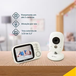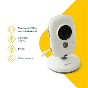 -Tela colorida de alta resolução com 3,2 polegadas -Nova função zoom com imagens nítidas para ver todos os detalhes importantes. -Conexão de até 2 câmeras no mesmo monitor para ver diferentes ângulos ou ambientes. -Grande contraste de luz e cores -Alcance de até 260m para monitorar seu bebê de qualquer lugar da casa -Visão noturna infravermelha automática com até 5 metros de distância para ver seu bebê claramente mesmo no escuro -Ativação por som -Tecnologia Talk Back que permite conversar com o bebê à distância -Transmissão wireless de 2.4Ghz para uma conexão estável -8 canções de ninar que tranquilizam o bebê -Sensor de temperatura que garante o conforto do bebê -Bateria de longa duração para até 20h de monitoramento contínuo. -Design clean e moderno que combina com qualquer ambiente. -Bivolt para compatibilidade com diferentes voltagens. -Acompanha 2 cabos de alimentação tipo C -Certificada pela Anatel – 16686-21-14400 para garantia de qualidade e segurança.