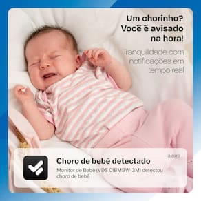 • Detecção de Choro com Alertas Imediatos: Seja notificado instantaneamente no seu celular quando a câmera detectar o choro do bebê.