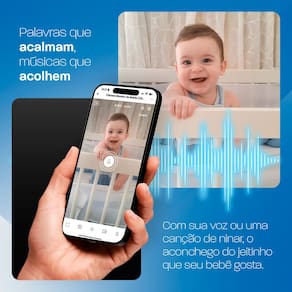 • Controle completo na palma da sua mão com o app Velds: Monitore e interaja com seu bebê em tempo real! Com áudio bidirecional, você pode falar e ouvir seu pequeno, além de acalmá-lo com músicas de ninar.