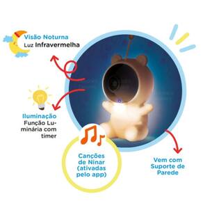 A babá eletrônica wifi peek-a-boo da multikids baby chegou pra trazer mais tranquilidade no dia a dia corrido dos papais e mamães. Nem sempre conseguimos estar perto dos nossos pequenos, mas com a peek-a-boo, mesmo à distância, você está sempre juntinho do seu bebê. a conexão wifi permite que você monitore seu bebê de qualquer lugar apenas acessando o aplicativo pelo celular. Tem mais de um usuário Não tem problema a função família do app permite que você compartilhe o acesso para outros usuários, bastando adicionar cada um pelo próprio app a câmera tem resolução de 1080p, visor colorido e campo de visão de 100 graus. As funções de visão noturna e áudio bidirecional permitem que você escute, fale e veja seu bebê mesmo se o ambiente estiver escuro. Os detectores de som e movimento ajudam a identificar facilmente o que o seu pequeno está fazendo e se ele precisa de você. A luz interna, quando acionada pelo app, transforma a babá em uma luminária que pode ser programada para desligar automaticamente via timer. Além de tudo isso, conta com um sensor de temperatura que pode ser programado para avisar quando a temperatura não estiver adequada para o bebê e uma coleção de canções de ninar ativadas via app. Seu zoom permite que a imagem seja aumentada em até 6 vezes para que você possa ver seu bebê de pertinho mesmo se a câmera estiver um pouco mais longe do berço. Além da transmissão em tempo real, é possível gravar ou tirar fotos para verificação posterior. E se você estiver sem espaço para armazenar essa coletânea cheia de fofura, pode ficar tranquilo ela tem espaço para você colocar um cartão de memória e não perder nadinha com suporte para parede e capa em formato lúdico de ursinho, a peek-a-boo além de trazer comodidade e segurança, combina com o quarto do seu bebê. A babá eletrônica wifi peek-a-boo une a qualidade multikids baby que você e seu bebê já conhecem e confiam à tecnologia de ponta da multilaser. O acesso pelo aplicativo multilaser liv permite acesso e controle pela casa conectada e é compatível com ios e android. Fique sempre pertinho do seu bebê e deixe ele pertinho de você com a peek-a-boo da multikids baby. Cartões de memória multilaser compatíveis - mc160, mc161, mc162, mc163 mc150, mc151