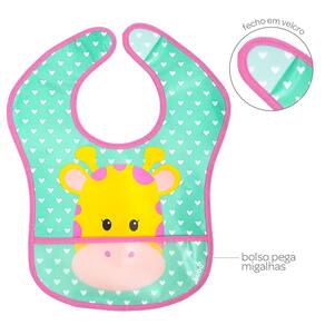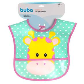 Babador com bolso 3m+ 15367 pega migalhas Personagens: girafa O babador impermeável buba é ideal para as mamães que querem praticidade e leveza no dia a dia das crianças. Possui tecido impermeável que facilita a limpeza e protege o bebê dos respingos da alimentação. A mamãe poderá manter a roupinha do seu príncipe ou princesa sempre limpinha vem com bolso na posição frontal que serve como cata migalha evita o desperdício durante as refeições. Possui fecho colante que se ajusta ao pescoço do seu bebê. com suas cores alegres e estampas divertidas, os babadores buba farão do momento da refeição uma ocasião mais feliz Informações técnicas - idade recomendada: a partir dos 3 meses 3m+ ; - com bolso frontal para reparar as migalhas nas refeições; - fechamento com fita tipo adesivo colante; - tecido impermeável e leve - praticidade para limpeza e proteção para seu bebezinho; - dimensões aproximada do produto: 30cm x 24cm x 0,05 cm c x l x p - embalagem contém 1 babador com bolso; - composição: frente 100% acetato de vinil de polietileno peva Ean: 7908103753706