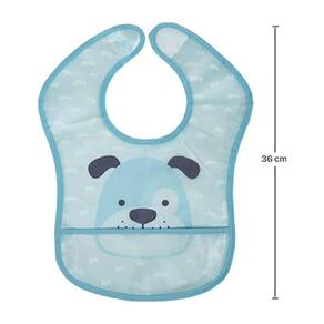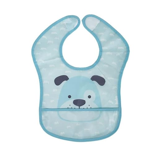 o babador com pega migalhas cachorro da buba possui tecido impermeavel e bolso pega migalhas, ideal para evitar que o pequeno suje a roupinha. O fecho em tiras aderentes se ajusta facilmente ao pescoco do bebe. Impermeável