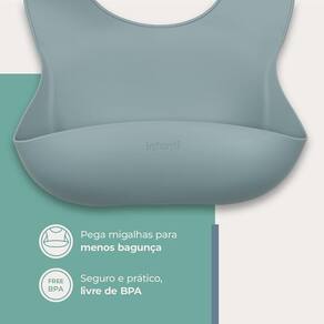 O Babador de silicone com pega-migalhas vai proteger a roupinha do bebê tanto na região do peito quanto na altura da barriga e nas pernas, já que tem o pega-migalhas vai evitar que os alimentos caiam em cima da criança!