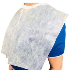 01 um Pacote de Babador Descartável Tnt Com Tiras Branco 30g Pct 100 unids