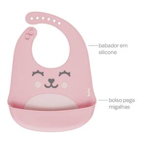 Babador impermeavel avental alimentação infantil bebes de silicone com pega migalhas Cor: rosa claro O babador de silicone da buba e super prático e higiênico. Possui bolso pega migalhas, ideal para proteger a roupinha do bebe. O fecho com botões se ajusta facilmente ao pescoço do pequeno.
