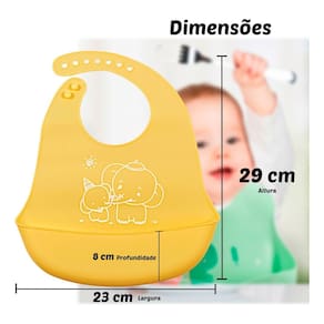 Babador Infantil 100% Silicone ImpermeávelO Babador de Silicone com Bolso Cata Migalhas facilitará muito seu dia a dia! Feito 100% em silicone, é molinho e leve, fazendo com que a adaptação do bebê seja mais fácil e confortável. O bolso cata migalhas ajudará a não sujar a roupinha do bebê, fazendo menos sujeira, e após o uso é super fácil para lavar e secar!- 100% Silicone: Material macio, maleável e extremamente confortável;- Livre de BPA;- Ideal para refeições dentro e fora de casa;- Bordas com acabamento arredondado;- Fecho ajustável: Fácil vestimenta e fácil de regular de acordo com o tamanho do bebê sem machucar;- Material impermeável: evita que a roupa da criança fique úmida por baixo do babador;- Fácil de limpar: pode ser limpo com o lado macio da esponja, pano úmido ou na máquina de lavar louças.